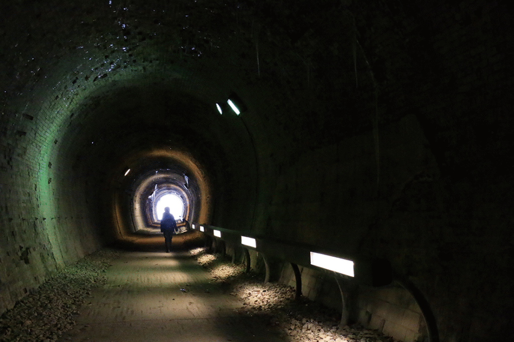 トンネル内には照明があり午前7時から午後6時まで点灯している。夜間は暗くなり危険なので注意しよう。